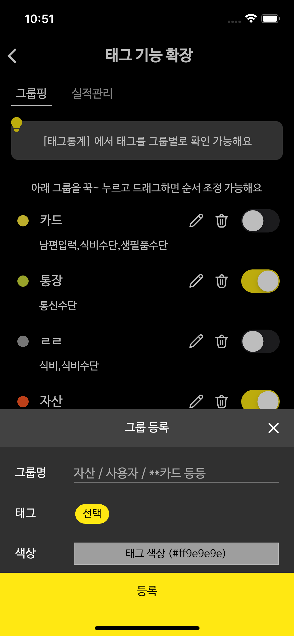 - 카드별 실적이 필요하면 태그에 **카드를 입력하자.