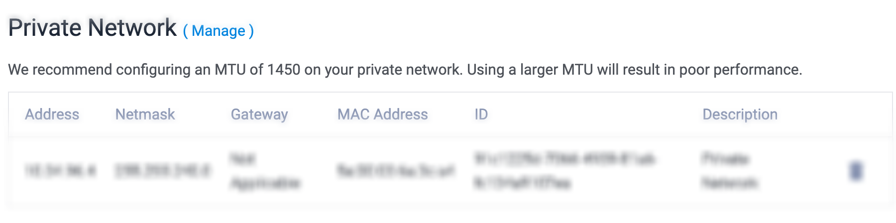 인스턴트 셋팅에 보면 아래와 같이 private network 정보가 있습니다.
