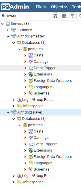 서버 두대가 백업이 되고 pgpool 이 부하 분산과 failover 를 담당해줄 것입니다.