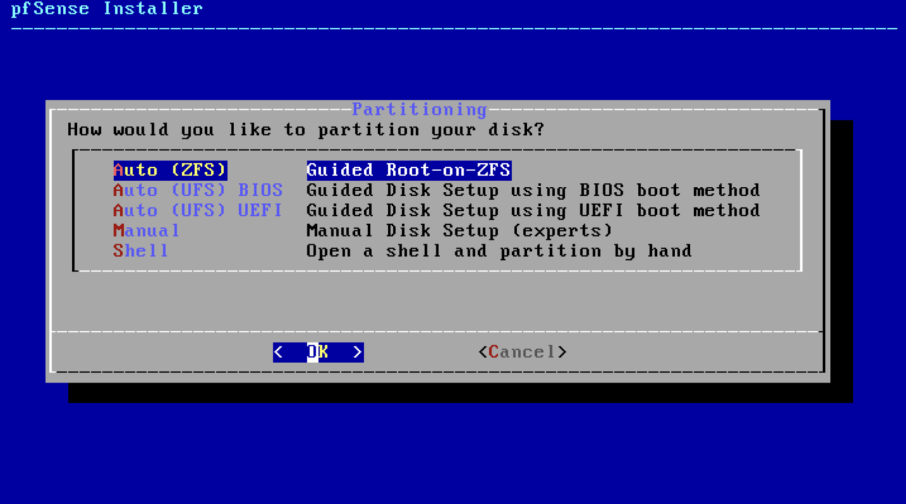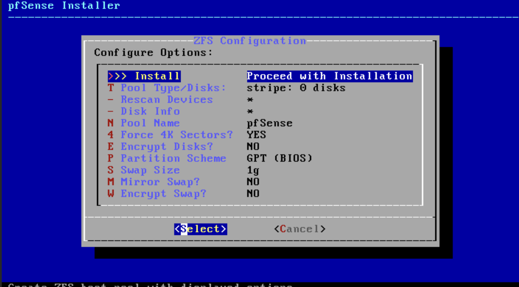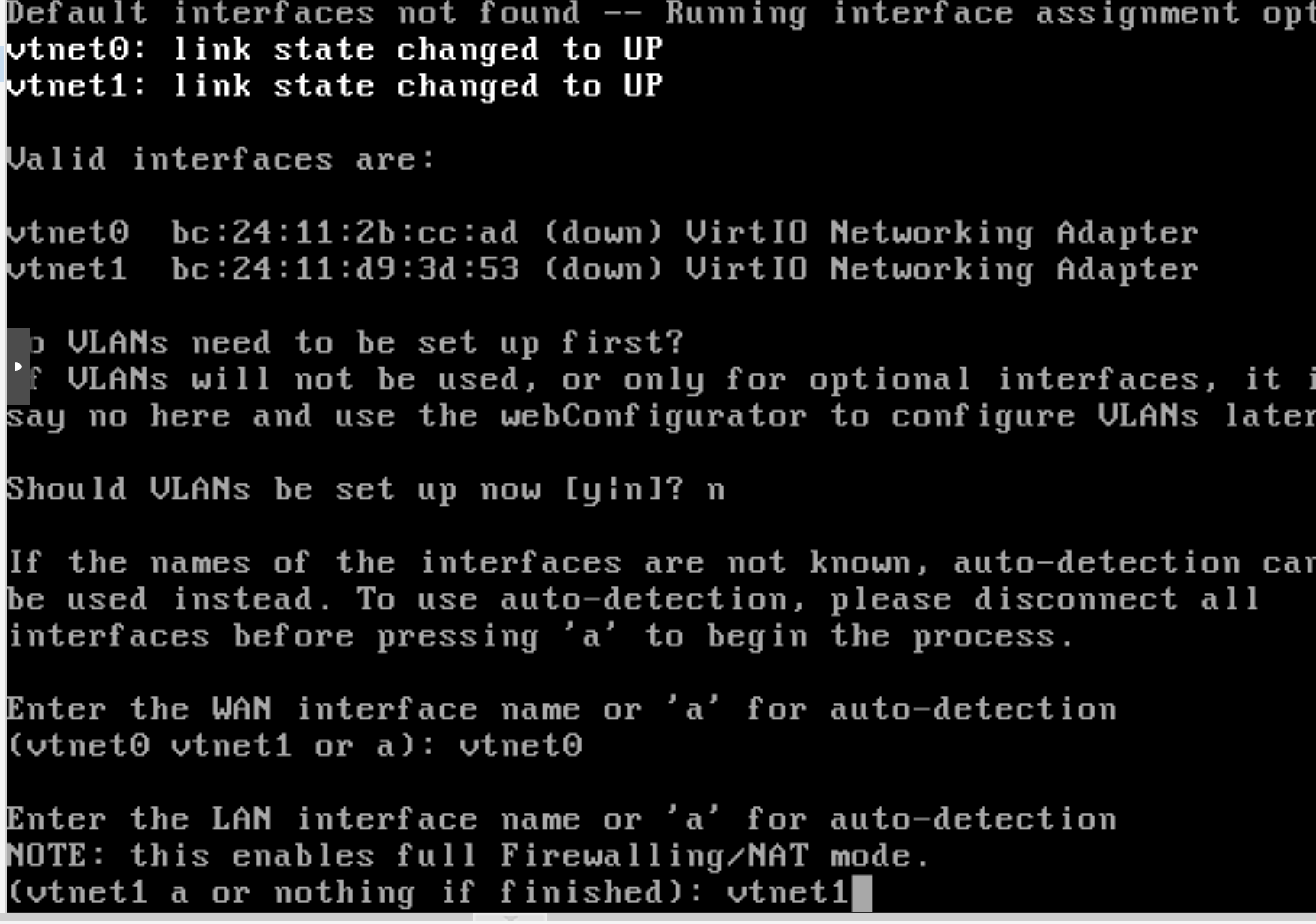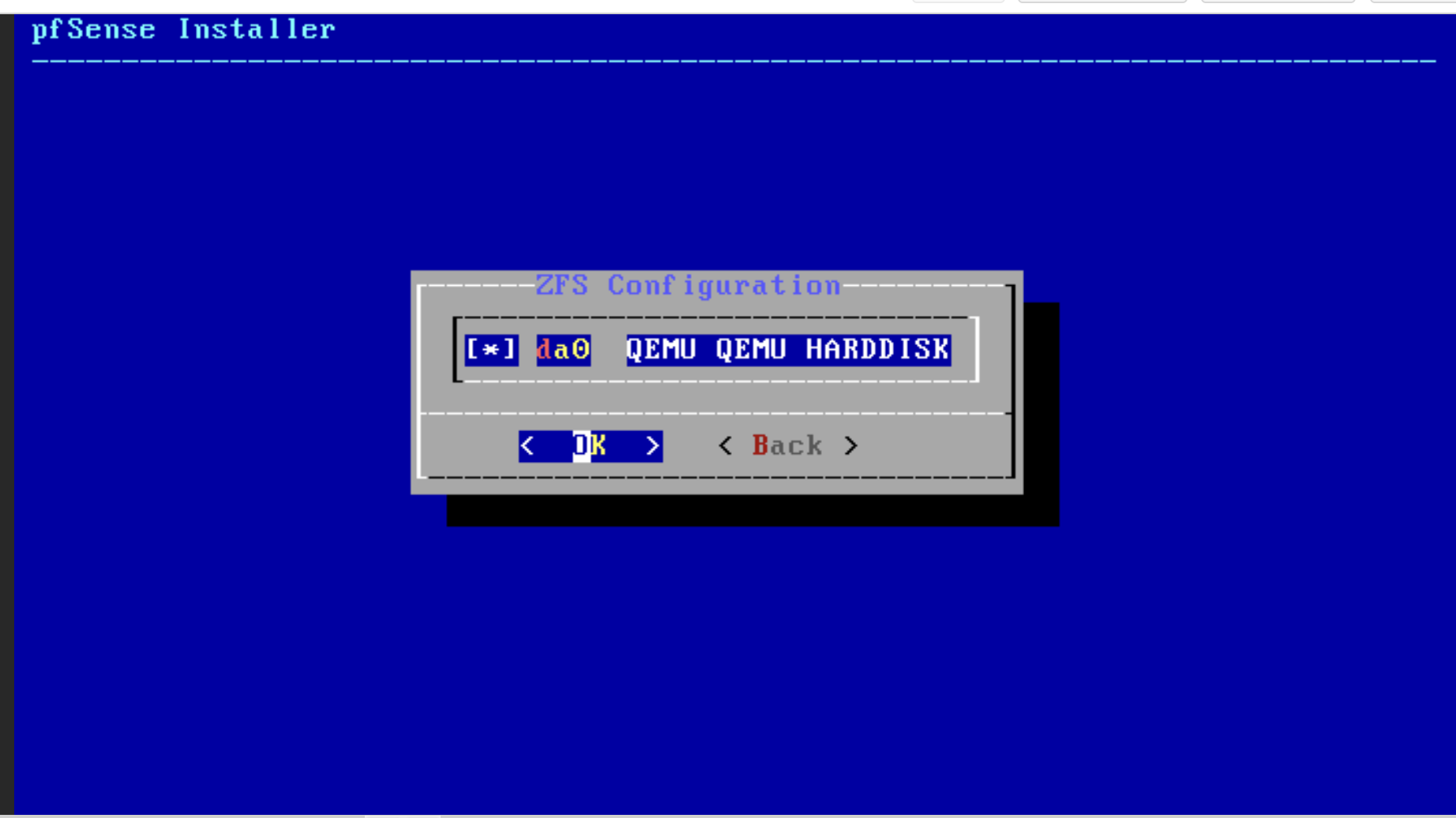 opnsense 는 3기가로 잡으라고 안내가 있었는데 pfsense 는 그냥 2기가로 잡았습니다.