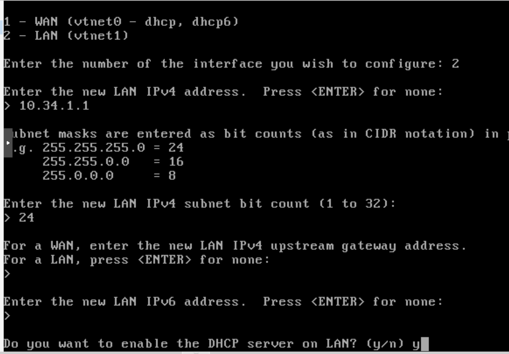 그런데 LAN 아이피 대역을 10.34.1.1/24 로 바꿔야 겠음
