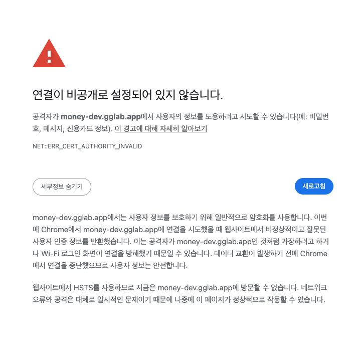 내 서비스의 도메인은 .app 도메인인데 이 도메인은 https 필수 도메인이다. 즉 http 로는 테스트 자체가 안된다.