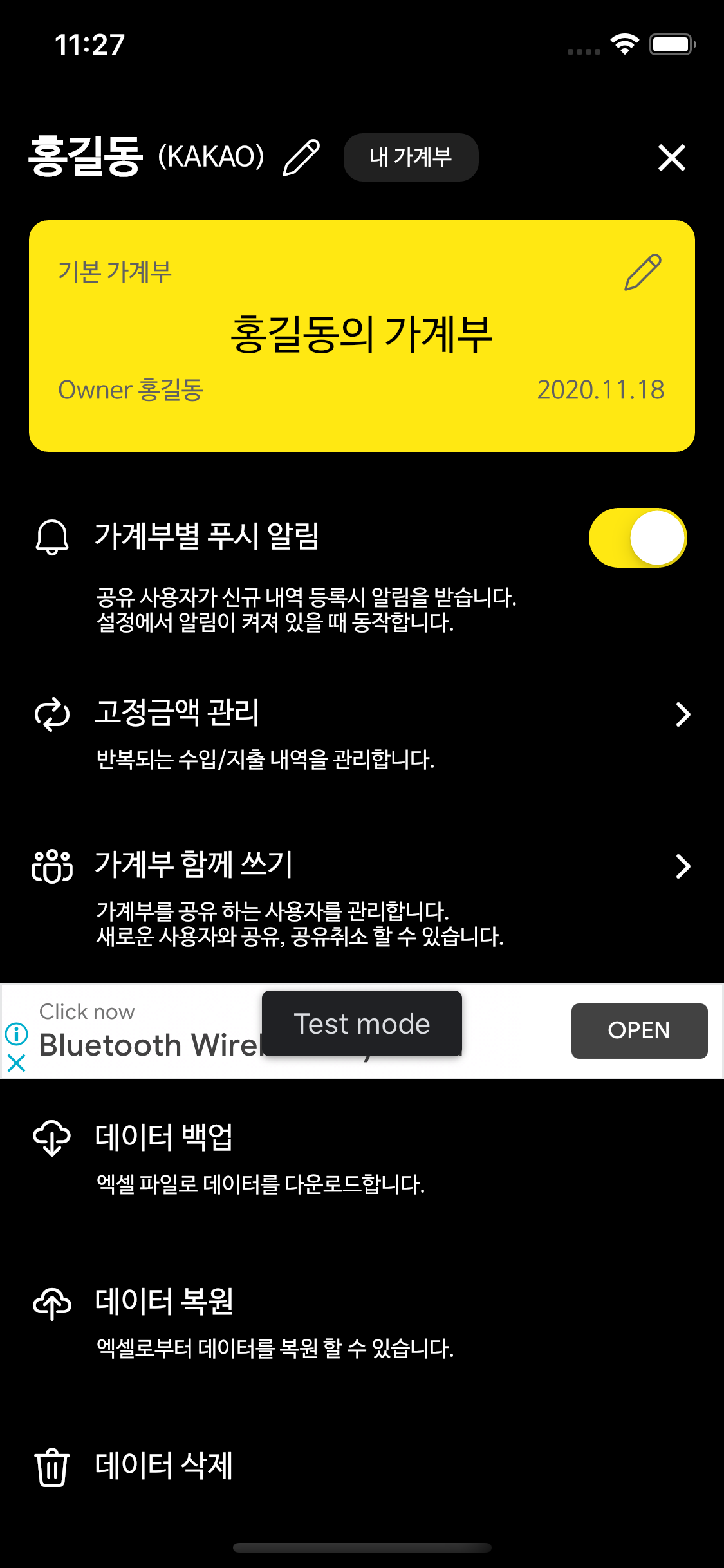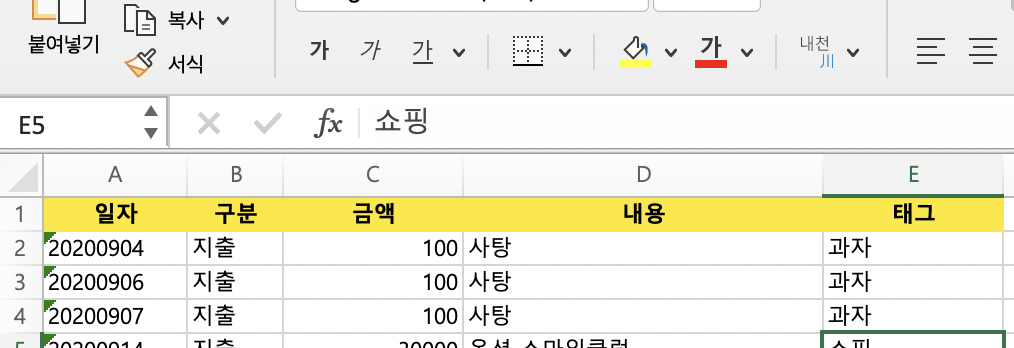 - 구분 : 지출 또는 수입 으로 입력해주세요